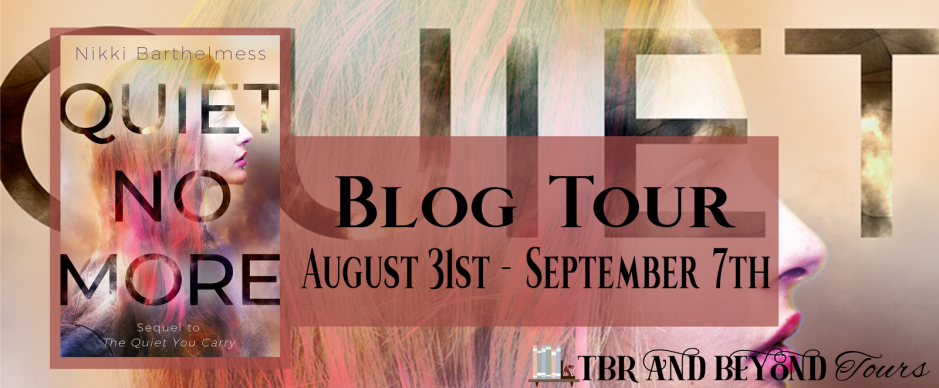Hello everyone! We are so happy and excited to announce the tour for Quiet No More by Nikki Barthelmess. The first book, The Quiet You Carry, will be available to any blogger who needs it.