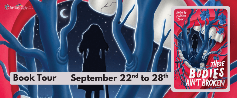 Hello everyone! We are so happy and excited to announce the tour for These Bodies Ain’t Broken Edited by Madeline Dyer. We have limited physical copies available for US residents and digital copies (Netgalley) for anyone in the US, Canada or International.